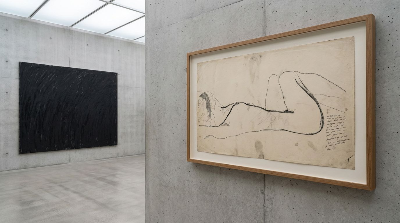 Grubers Arbeit korrespondiert in dieser Präsentation im Dialog mit Richard Serras monolithischer Schwere. Während Serra den Raum durch Masse definiert, definiert Gruber ihn durch die Spur.
