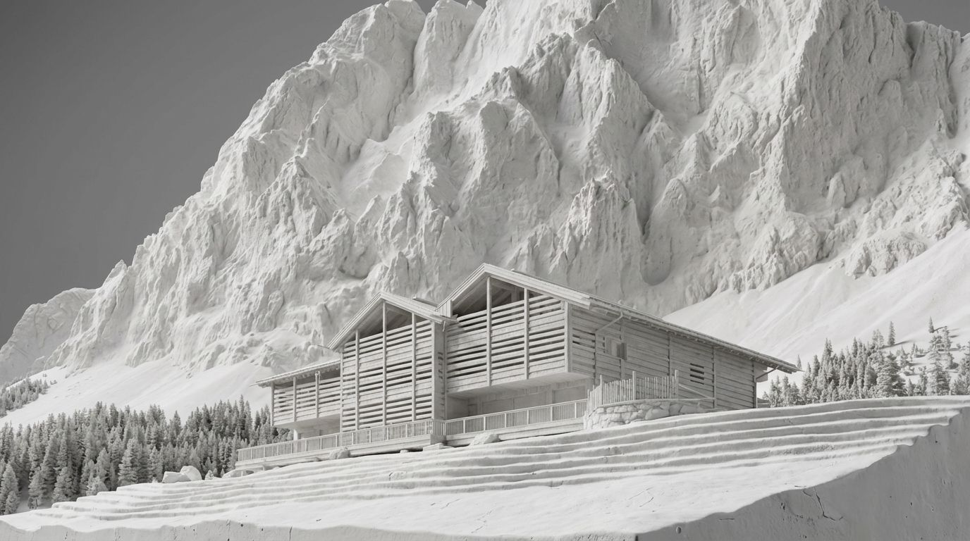 Das Projekt „Eriro“ artikuliert sich als eine architektonische Ontologie des Wesentlichen. Es ist der Versuch, die Dialektik zwischen der archaischen Wucht der Alpen und der Zerbrechlichkeit menschlichen Rückzugs neu zu verhandeln. In einer Ära der digitalen Beliebigkeit setzen wir mit diesem Entwurf ein Statement für die physische Präsenz und die haptische Wahrheit des Materials.