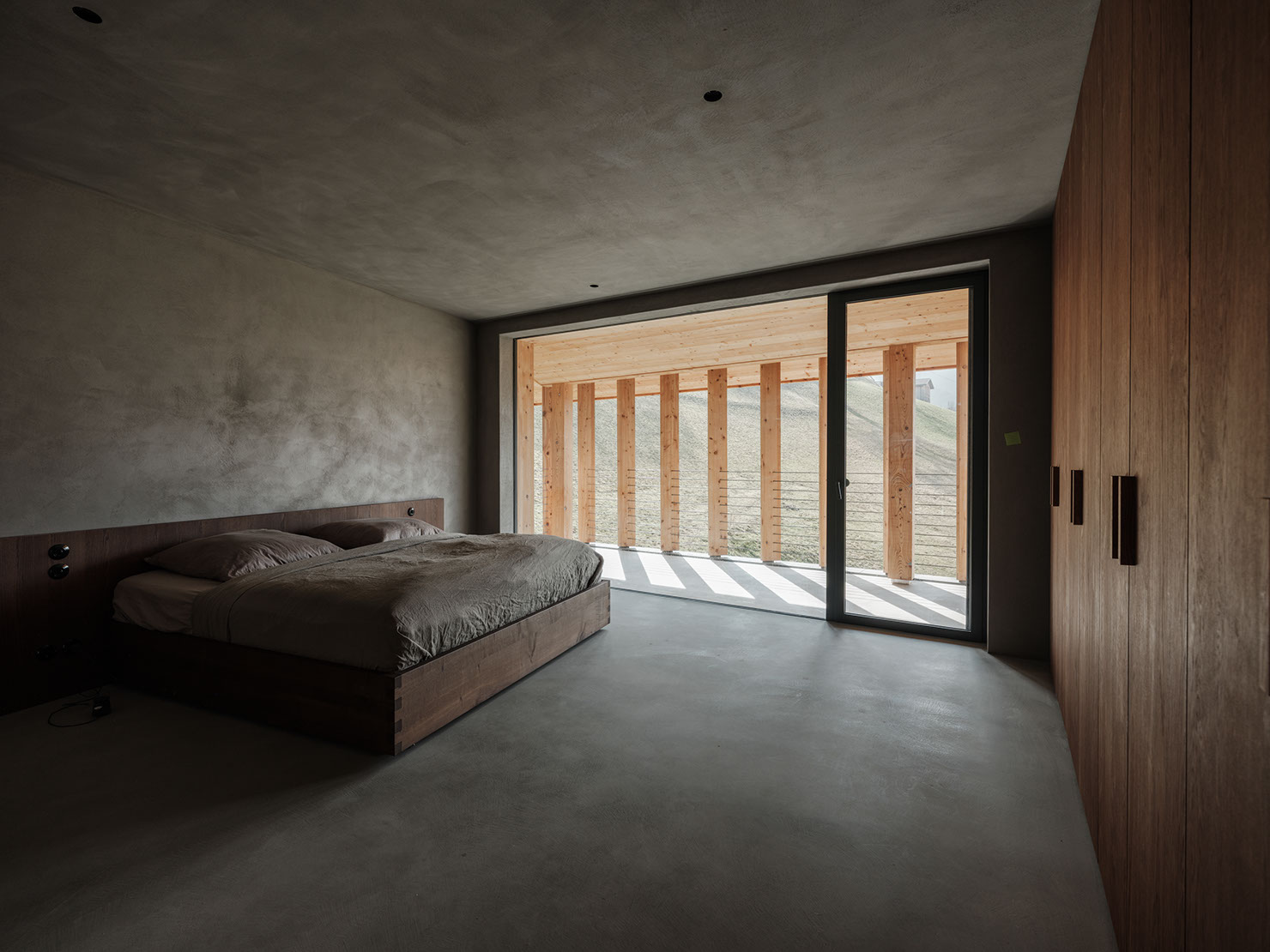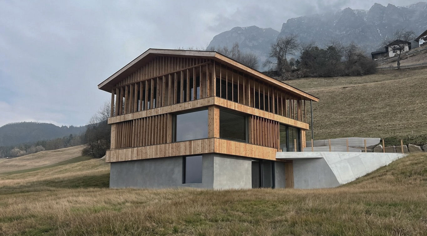 Der Entwurf reinterpretiert die Anonyme Architektur des alpinen Stadels als zeitlose Wohnfigur. Durch die kompromisslose Trennung von mineralischem Sockel und tektonischem Holzaufbau entsteht eine rurale Eigenständigkeit, die Bescheidenheit als ästhetisches Prinzip feiert. Die vertikale Holzstruktur wird zur Membran zwischen Innen und Außen, die das Licht filtert und den Ort rhythmisiert. Architektur als stille Setzung, die im Dialog mit der Landschaft auf jede Geste verzichtet.