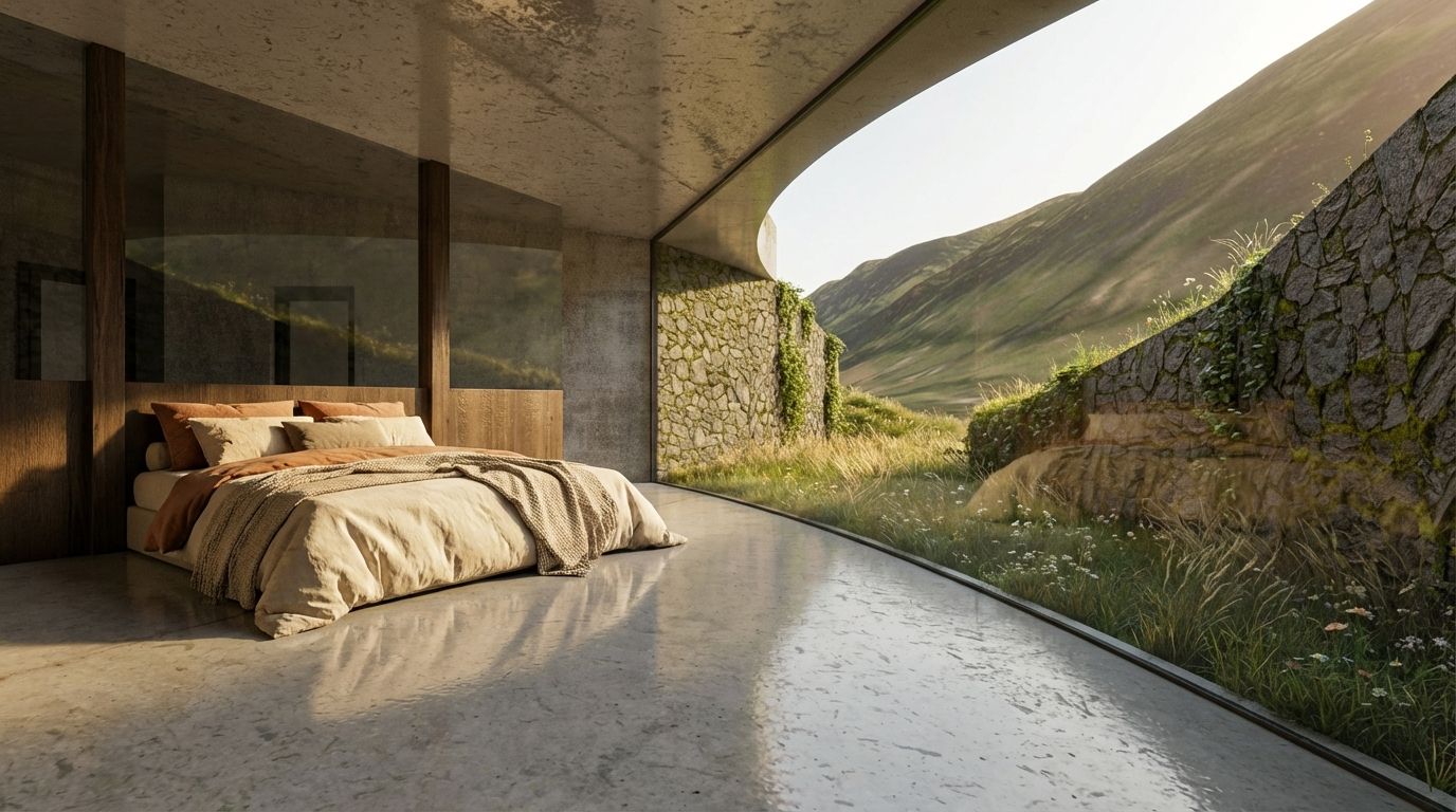 Diese Architektur versteht sich als eine räumliche Operation innerhalb eines topografischen Kontinuums. Zwei Natursteinmauern werden als primäre tektonische Setzungen gelesen, aus deren Beziehung ein Raum hervorgeht, der sich als gefasste Leere artikuliert. Die Landschaft wird dabei nicht überformt, sondern in eine neue räumliche Lesbarkeit überführt, indem Oberfläche zur Unterfläche wird. Die Wand als statischer Träger und selbst massiv, in die Landschaft auslaufend und unterschiedliche Zustände derselben Schichtung erscheinen.