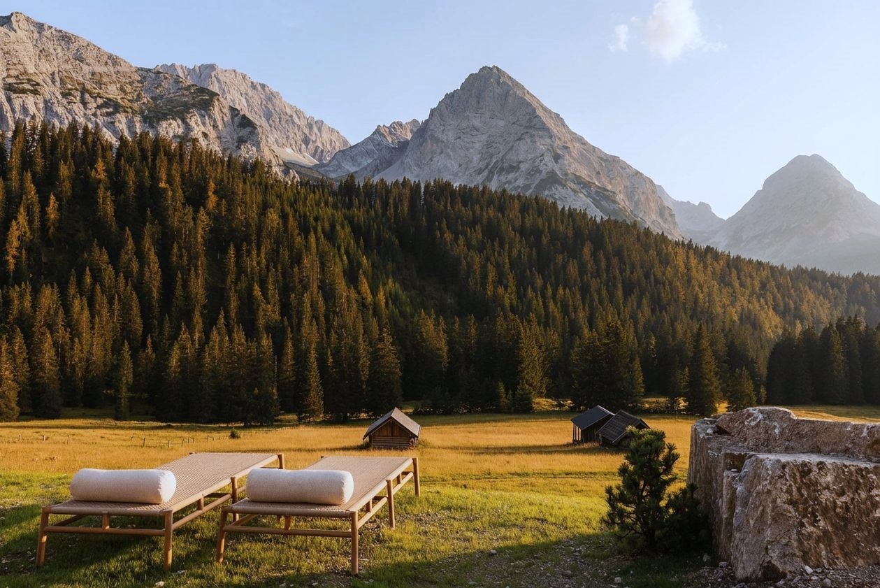 Materialität: Die Verwendung von rohem Holz und Stein ist kein ästhetischer Selbstzweck, sondern eine Rückbesinnung auf die ökologische Vernunft und die atmosphärische Beständigkeit.